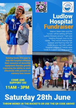 On Saturday 28th June, ‘Matron’ Mark Hiles and his colleagues will again be rattling buckets in Ludlow town centre to raise funds on behalf of Ludlow Community Hospital League of Friends. . For years it has been a very popular and successful event with a carnival atmosphere and greatly supported by Ludlow residents and visitors to the town.